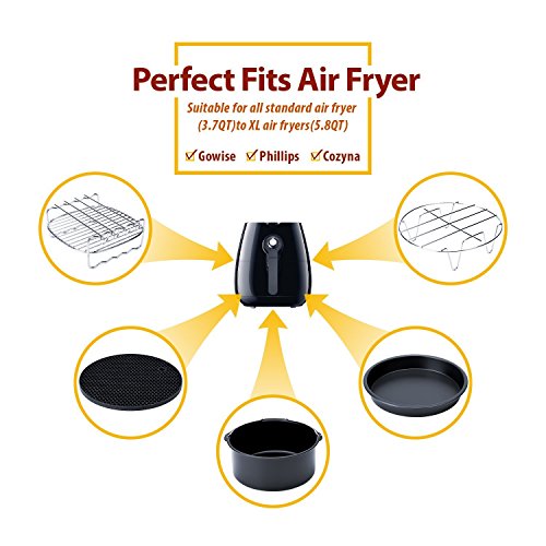 • ✔WIDE APPLICABILITY: Compatible with all 3L and above air fryers, this universal 6 pas air fryer accessory fits all standard 3.7QT to 5.8QT, such as Cozyna, Philips, Gowise and other Power Air Fryers.