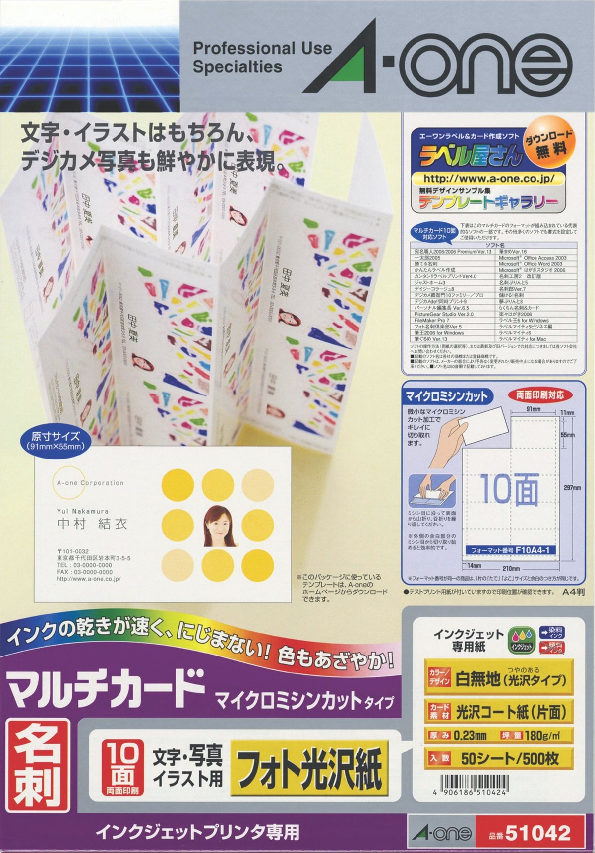 A-One multi-card business card photo glossy paper 500 sheets of 51 042