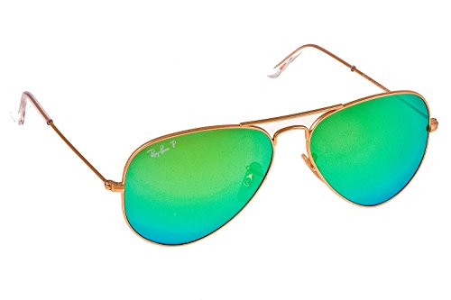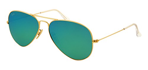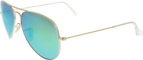 Ray-Ban Aviator Large Metal Sunglasses RB3025 112/19-5814 - Matte Gold Frame, Crystal Green Multil Green Mirror Lenses