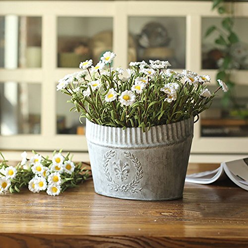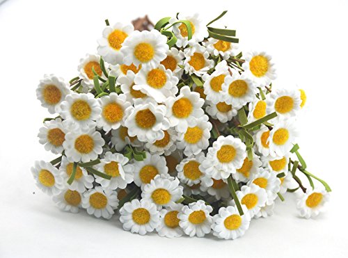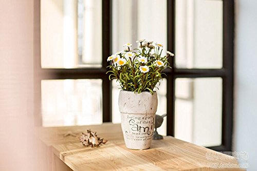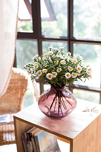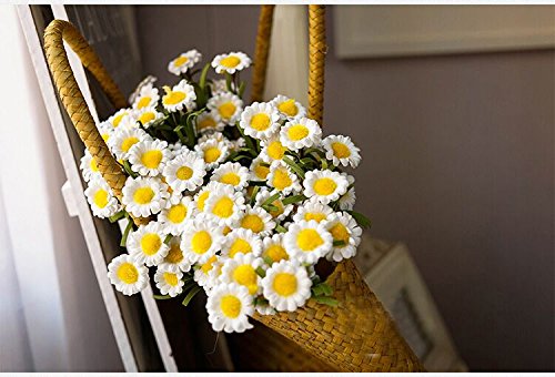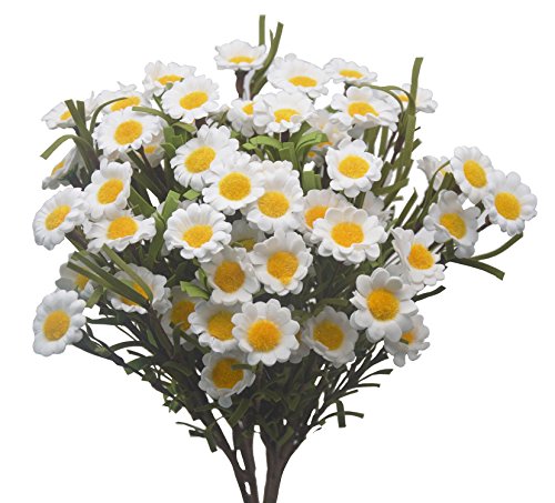 Artificial Plants Flowers, 6pcs Daisy Bouquet ,Faux PE Small Daisy Fake Leaves Shrubs Simulation Greenery Bushes Indoor Home Garden Light Green Window Office Wedding Decor(White)