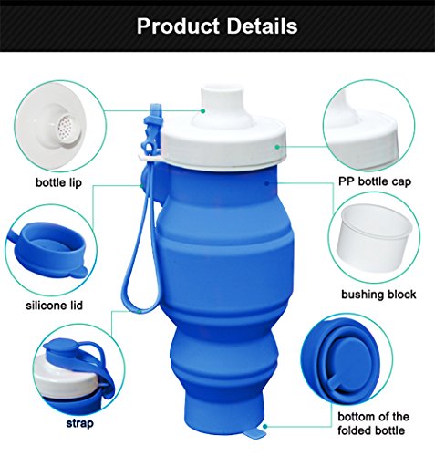 -. Title : Collapsible Silicone Water Bottle, Silicone Water Canteen Sport Kettle Portable Foldable Nontoxic Bottle BPA Free Reusable 530ML for Hiking, Camping, Cycling, Running, Airplane Travel, Yoga Gym