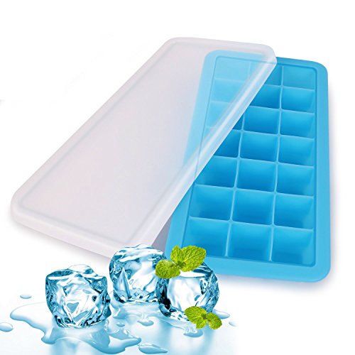 Silicone Ice Cube Tray with Lid Cover, BPA Free, 21 Cubes Each, Easy Release Ice Cubes Molds for Cocktail, Whiskey, Coffee, Fruit Juice by Ezeagbor (1 pcs, blue)