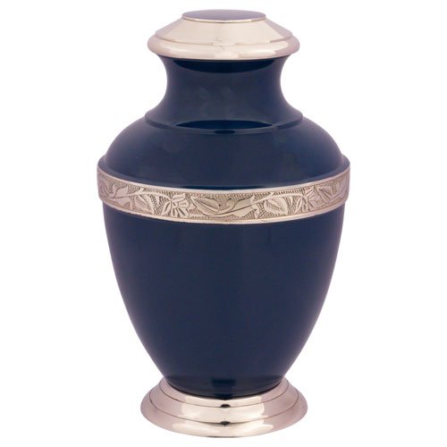 Callia Night Blue Brass Urn by Silverlight Urns, Navy Brass Cremation Urn, Adult Size, 11.25 Inches High
