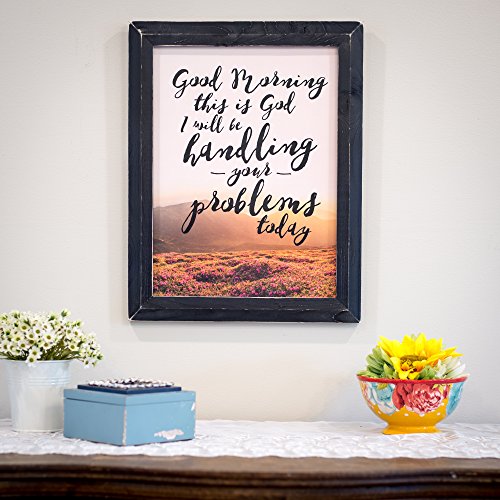 Good Morning God Lavender Field Design 18 x 14 Weathered Black Framed Art Wall Sign