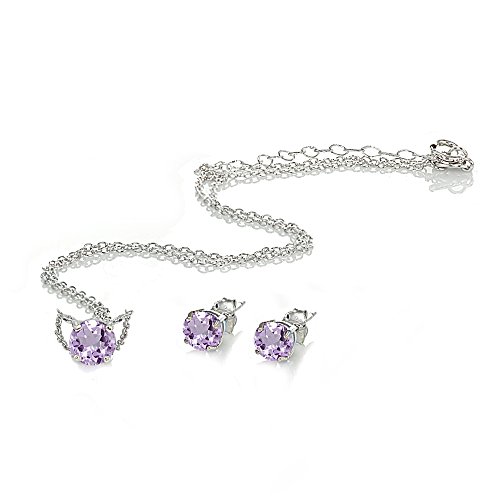 -. Feature : FEATURES - This gemstone jewelry for women set displays a solitaire necklace choker and matching stud earrings. The necklace features a 6mm solitaire amethyst gemstone and the earrings feature amethyst solitaire earring studs. This amethyst choker and amethyst stud earring in fine jewelry for women and fine jewelry sets for women are a great addition to your gemstone jewelry collection. They can be purchased as choker necklaces for women, teen girls and as jewelry for little girls. / CRAFTED - The necklace and earrings choker set is crafted of 925 sterling silver, nickel free and tarnish free. The solitaire gemstone is attached to a thin 13-inch rolo chain plus a 3" extender and the stud earrings secure with post and friction backs. / SATISFACTION - We offer a 30-day satisfaction money back guarantee. If you're not satisfied for any reason, you will receive a full refund upon returning your purchase within 30 days. / PACKAGING - Jewelry packaged with a nice pouch ready for gifting. / ABOUT - Our jewelry collection is an assortment of hand selected fine and fashion jewelry. We carry an expansive selection of gemstones, cubic zirconia and precious metals. This includes a variety of pendant necklaces, dangle, drop and stud earrings, hoop earrings, tennis and line bracelets, rings, polished jewelry, birthstone jewelry etc.