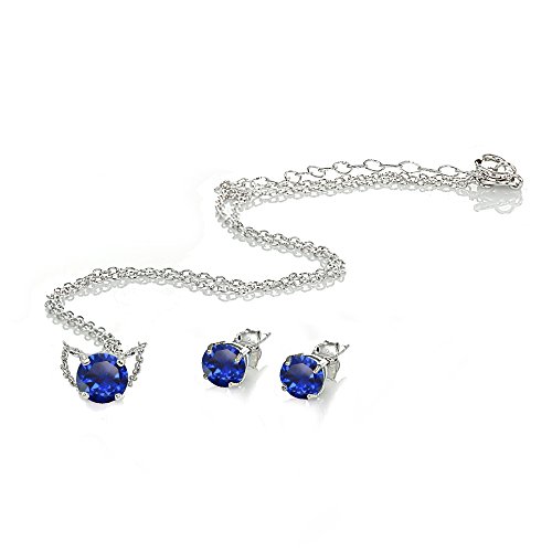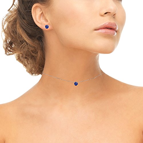 -. Title : Sterling Silver Genuine, Created or Simulated Gemstone Round Solitaire Choker Necklace and Stud Earrings Set