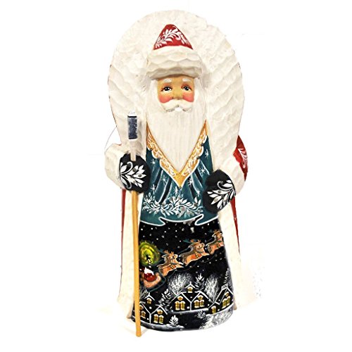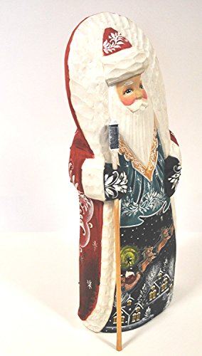Unique Russian Hand Carved and Painted Wooden Santa in Sleigh