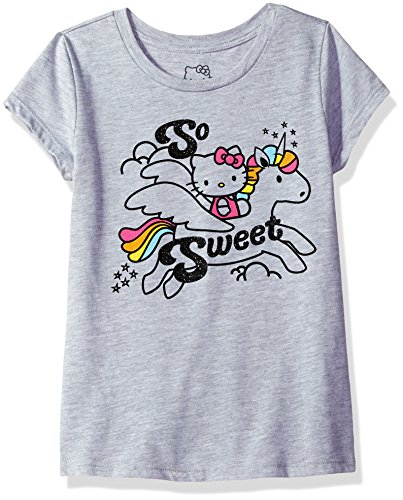 Hello Kitty Big Girls' So Sweet Unicorn Short Sleeve Tee Shirt, Heather Grey, M 10/12