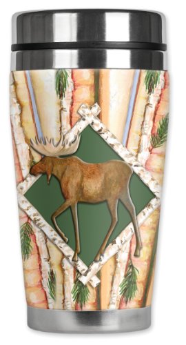 Mugzie Moose Crossing Travel Mug with Insulated Wetsuit Cover, 16 oz, Black