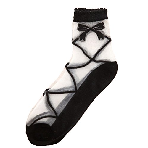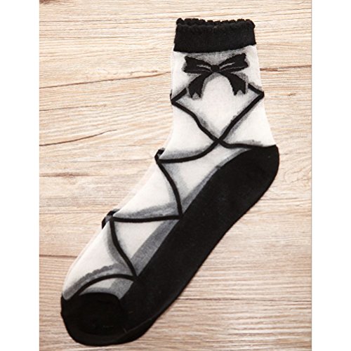 -. Title : Tinksky Transparent Crystal Silk Short Socks Bowknot Transparent Short Stockings for Women Girls (Black)