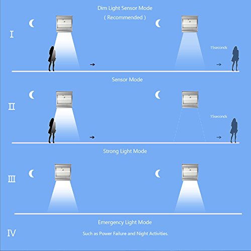 ✔ High capacity and Eco-Friendly: Larger solar panel with 1500mAh capacity, this solar motion sensor light is charged by exposing to sunlight in day for around 6 hours store the power for 8 hours lighting at night (dim light), getting faster charging in less sunshine environment.