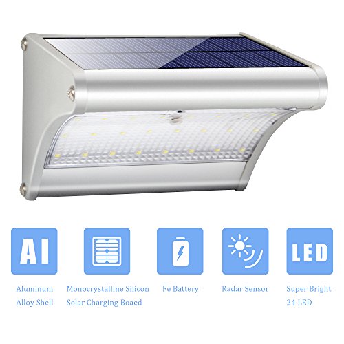 Brojen Super Bright 24 LED 450 Lumen Aluminum Alloy Microwave Radar Motion Sensor Wireless Security Wall Outdoor Solar Lights With Waterproof & Fast Charge For Garage, Patio, Garden, Driveway (24 LED)