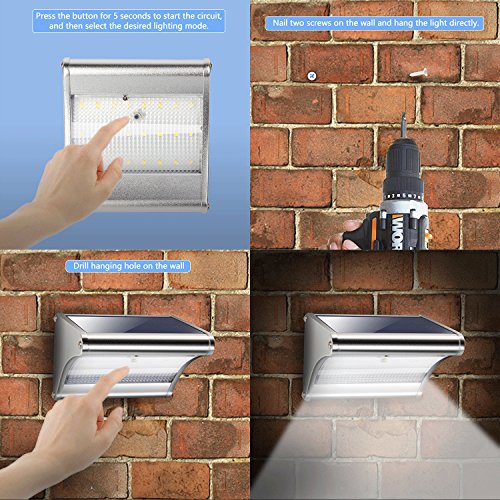 ✔ Ultra-Bright Solar Lights: 24pcs powerful SMD2835 LEDs with 450 lumens (equal to 45W filament lamp) which is far brighter than other solar lights in the market. It's a perfect choice to be used in outside wall, garden, fence, patio, pathway, yard, driveway etc.