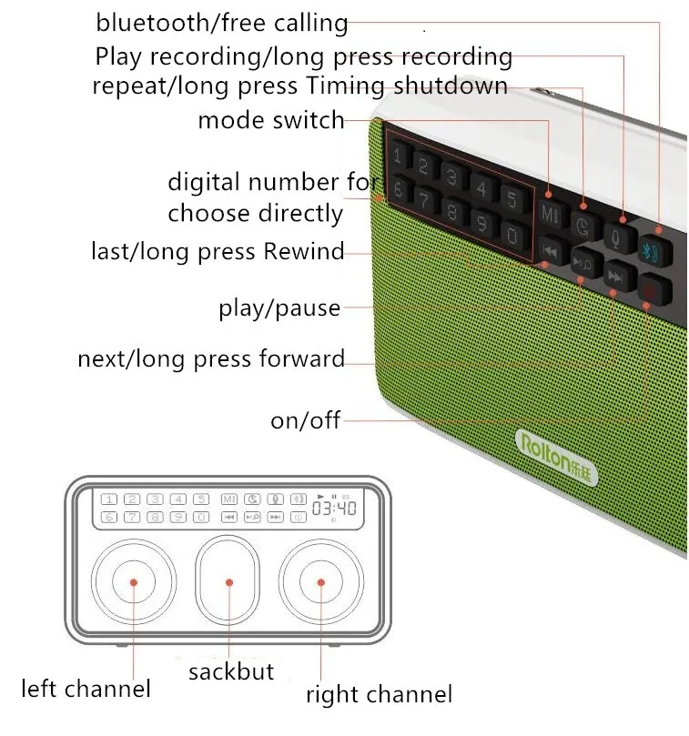 1. Support 32GTF card to play Mp3 and WAV music. Directly enter numbers to play music