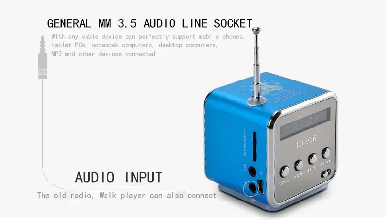 Multi-function speaker supports FM/ Micro SD Card/ TF Card/ USB/ 3.5mm jack audio device