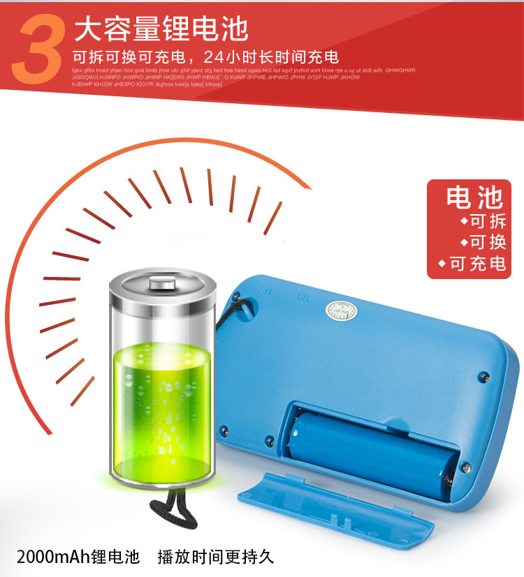 4. Lots of functions: Card play, FM radio, computer speaker, flashlight, digital song, power off memory and so on.
