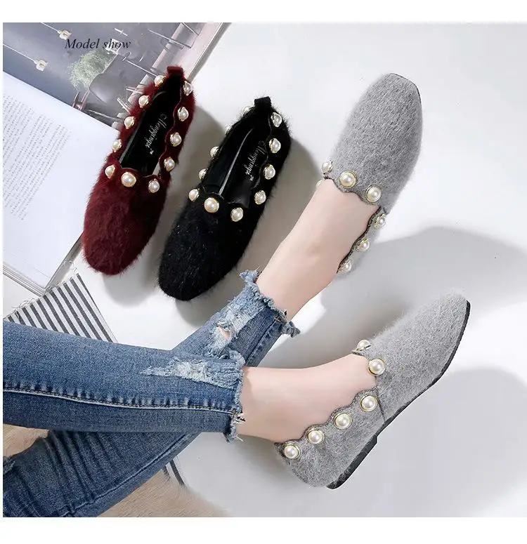 colour:Black grey wine red flat shoes