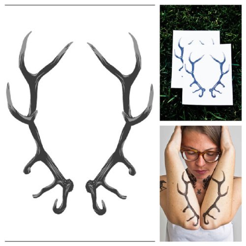 Tattify Antlers Temporary Tattoo - Taxidermy (Set of 2)