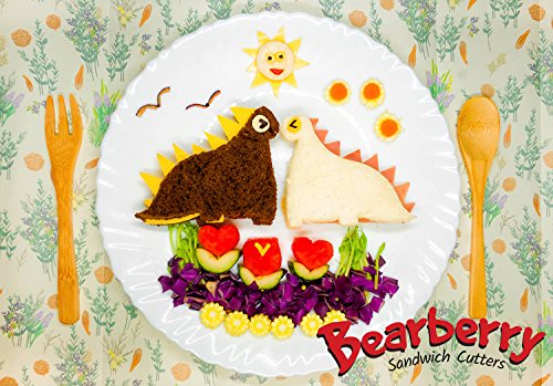 Bearberry Sandwich Cutters, Bread Crust & Cookie Stamp Set - Fun Heart, Dinosaur, Food Shapes for Kids Bento Lunch Box, Boys and Girls - GET FREE Mini Stainless Steel Vegetable & Fruit Press!