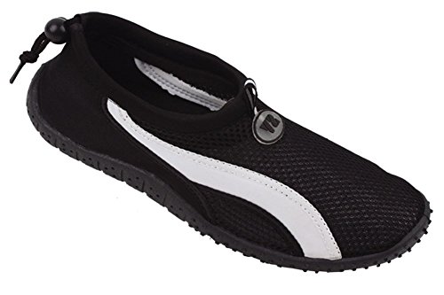 -. Binding : Apparel -. Brand : Staybay -. Color : Black -. Department : mens -. Feature : Adjustable tight cord in back / Great for pool, beach, exercise etc / Nylon / TPR Outsole / Very Comfortable -. ProductGroup : Shoes -. ProductTypeName : SHOES -. Title : New Mens Slip On Water Pool Beach Shoes