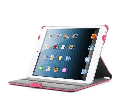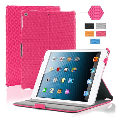 KHOMO iPad 5 AIR Case Pink Grid Leather Texture Cover with Elastic Hand Strap and Stand