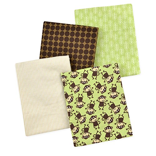 Carter's 4 Piece Flannel Receiving Blankets, Monkeys/Brown/Green/White