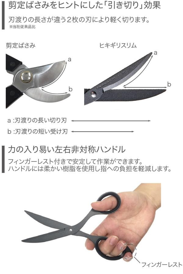 | 細かい作業がしやすく「引き切り」効果で軽く切れるはさみ。 |