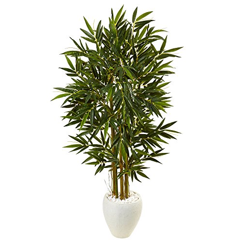 Nearly Natural 5.5’ Bamboo Artificial Tree in White Oval Planter, Green