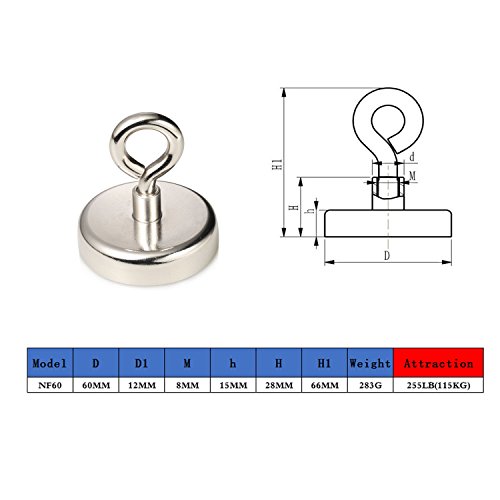 Multi-Use: Unique design with Countersunk Hole and Eyebolt Great for salvaged of various iron-containning nickel material underwater and Good idea for magnet fishing, lifting, hanging, retrieving applications. Have fun to searching items like eyebolt, screws, hooks, fasteners and so on in your warehouse garage or yard