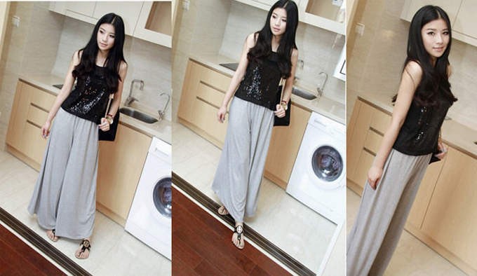 ■実寸(cm):(1)総丈(2)ウエスト (3)ヒップ(4)モモ幅 95/68-113/108/62 ■素材:モダール