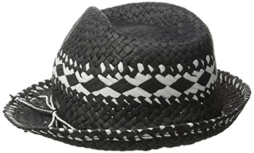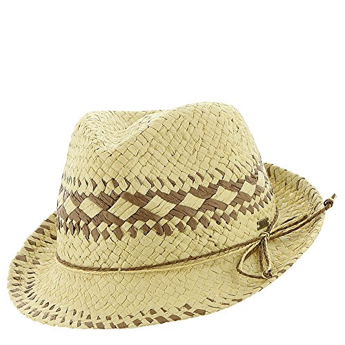 Straw fedora hat with contrast artwork, Roxy metal plate.