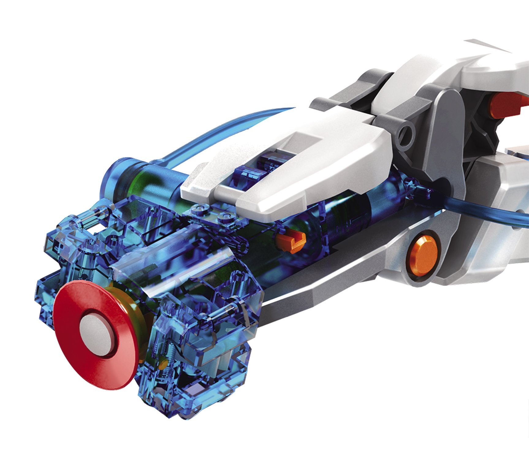 It is a robot arm that works with "water pressure" born by applying force to the water in the cylinder.