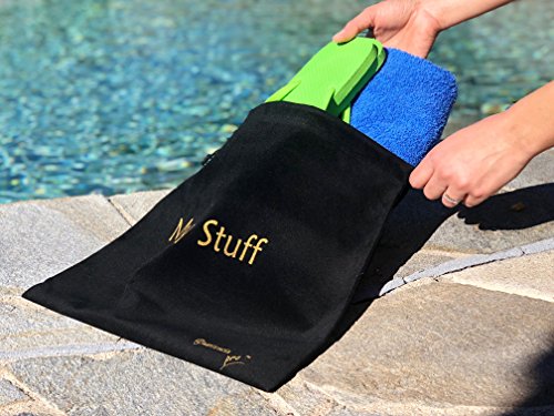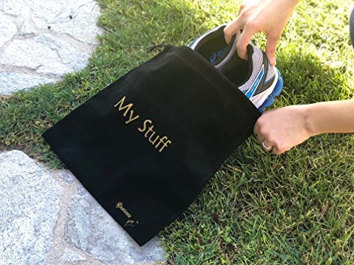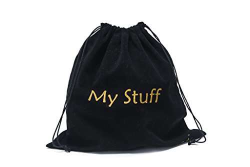 Premium Large Velvet Bag 13.5 x 13.5in Labelled My Stuff - Yoga Class Gym Drawstring Bag - Personal Care Storage - Hair Dryer, Toiletry- Gift Bag- Black