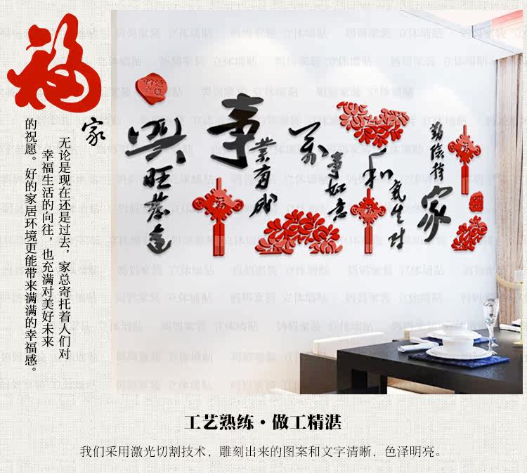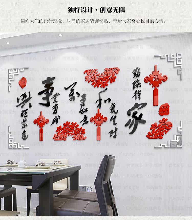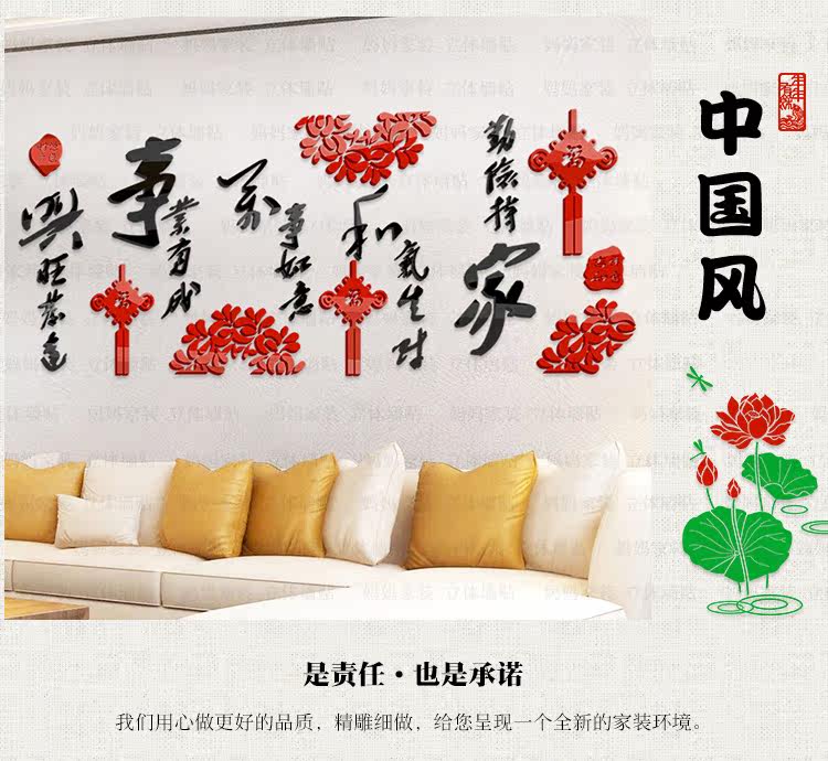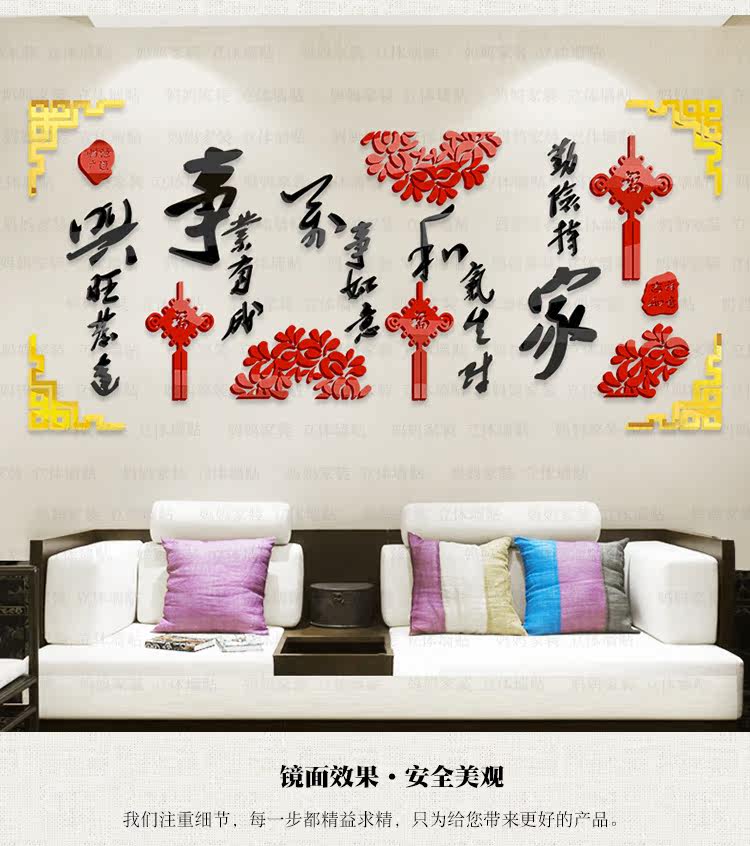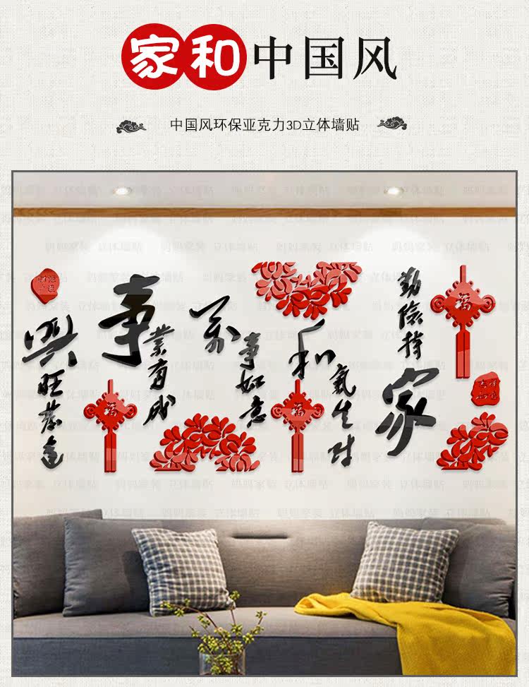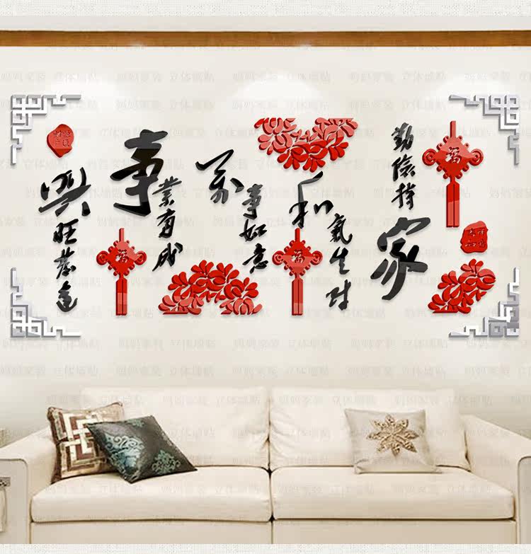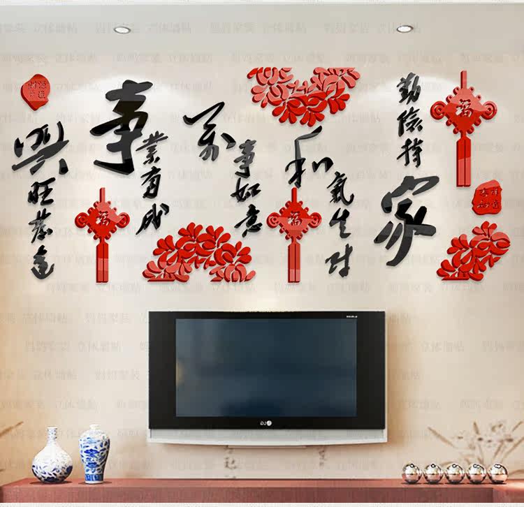 客厅墙装饰贴画沙发背景电视墙布置墙贴中国风3d亚克力立体墙贴纸