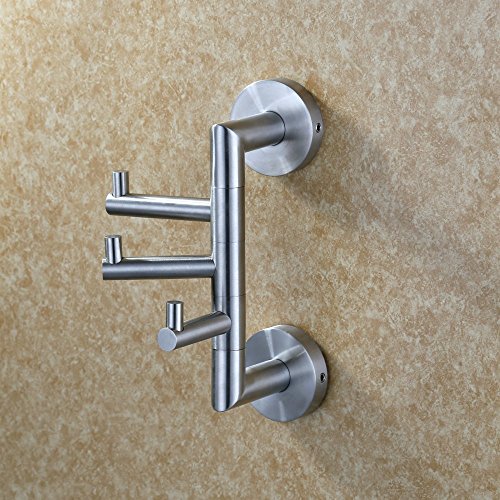 KES SUS 304 Stainless Steel Swing Out Towel Bar 3-Bar Folding Arm Swivel Hanger Bathroom Storage Organizer Rustproof Wall Mount Brushed Finish, BTH201S3-2