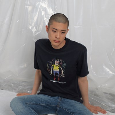 앞면 전판에 드로잉그래픽으로 포인트를 준 티셔츠입니다.