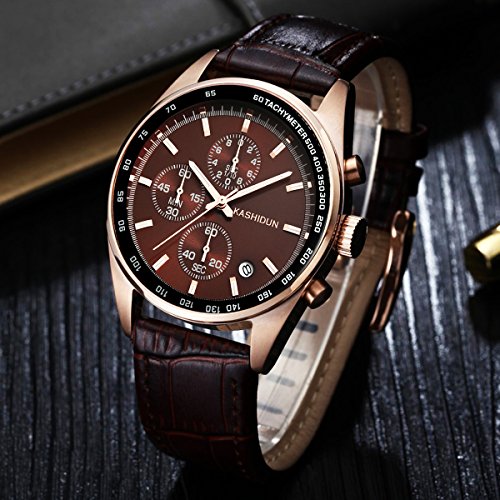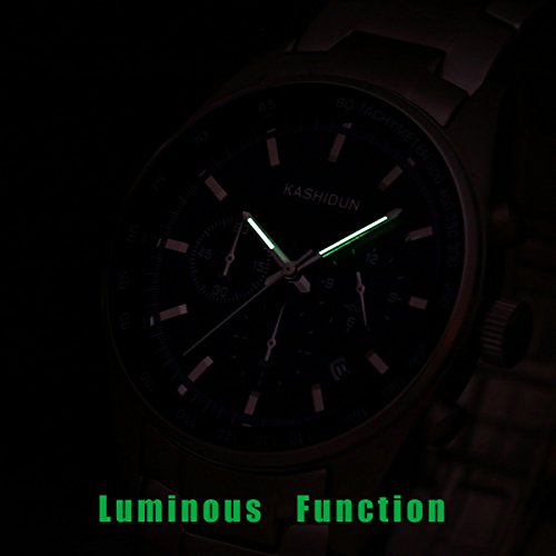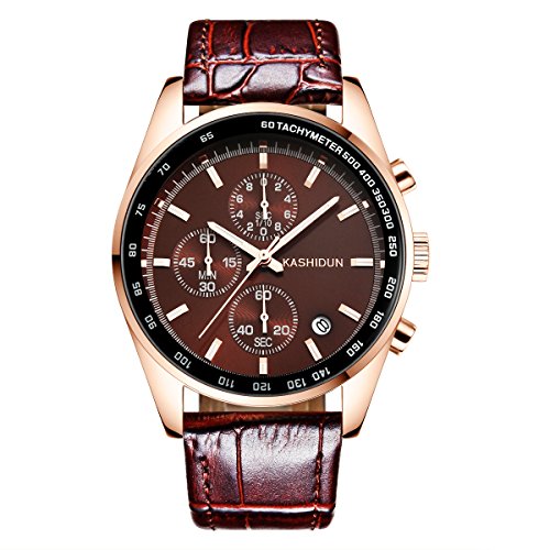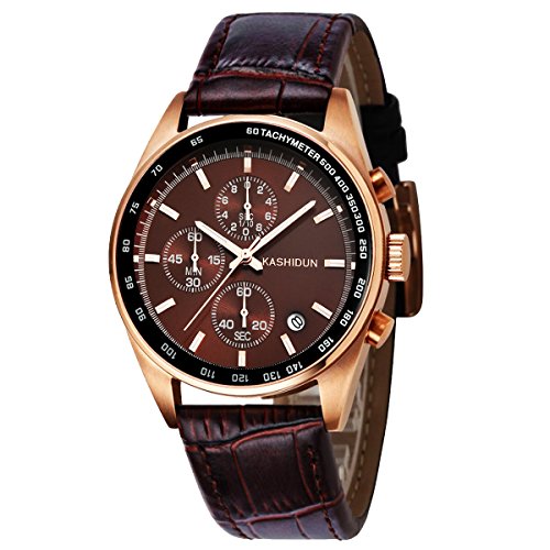 -. Feature : Durable mineral crystal screen scratch-resistant, Japanese quartz movement / Date window(3 o'clock), Muti-functional features(Chronograph, 60-minute and 60-second sub-dials) / Stainless steel case, Genuine Leather strap with buckle closure / Steel band with double push hidden clasp / 30M water resistant, withstands rain and splashes of watet but no swimming or showering / Gift Idea: Sports Watch is a great gift choice to your loved ones for Christmas, birthday, anniversary, Mother's Day, graduation and Valentine's Day, Or as a business and party present; If you have any questions, Please feel free to contact KASHIDUN After-sale Service Email: kashidun.ur@hotmail.com