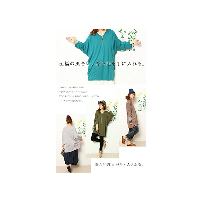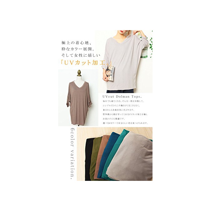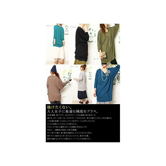원본상품명: (Goldjapan)ゴルドジャパン 大きいサイズ レディス UV加工 防臭加工 Vネック ドルマンスリブ チュニック トップス カットソ 長袖 型カバ Tシャツ ワンピス ロング丈 ト