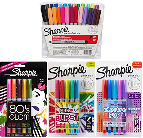 Sharpie Ultra Fine Point Permanent Marker Set, Assorted Colors, 39-Pack, Includes 5 Color Burst, 5 Electro Pop, and 5 80's Glam Colors
