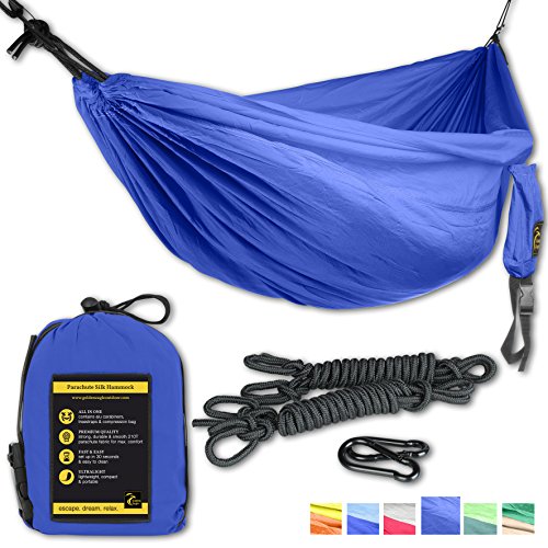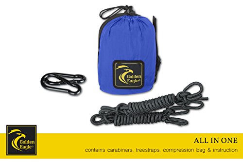 Single Eagle Camping Hammock Incl. 2 carabiners and 2 ropes - 108 x 55 in - 440 lbs load - Top Rated Best Quality Lightweight Parachute Nylon 210T Hammocks.