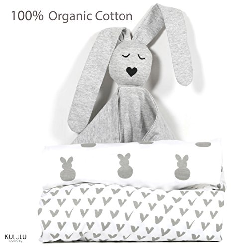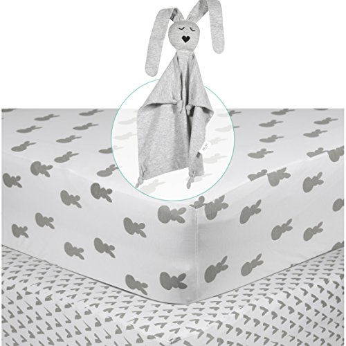 Perfect Gift - Paired with a very special friend, a Bunny Lovey to snuggle with. The Crib Sheet and Bunny Lovey Set comes in a matching drawstring bag for easy and clean storage. Become a Baby Shower Superhero with this gender-neutral, timeless & chic designs.