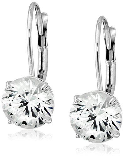 10k gold earrings featuring prong-set Swarovski Zirconia rounds and lever-back closures