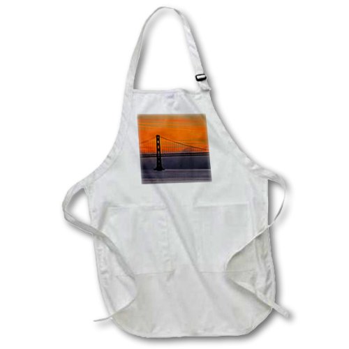 3dRose apr_86621_1 USA, California, San Francisco, Bay Bridge-Cindy Miller Hopkins-Full Length Apron with Pockets, 22 by 30-Inch, White