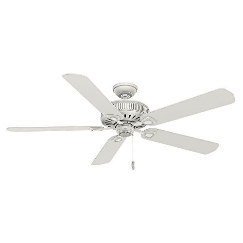 It's all in the details with the classic, ENERGY STAR rated, Ainsworth ceiling fan from Casablanca. Painstakingly meticulous columns grace the cottage white motor housing of this 5 blade fan to create a sophisticated, timeless look. A 4-speed pull chain comes standard to allow for quick adjustments while the Direct Drive motor provides unparalleled power, silent performance, and reliability over decades of daily use. For added convenience the cottage white blades are coated with patented Dust Armor nanotechnology that repels up to 58% of dust build-up. These captivating details combined with a 54-inch blade span give the Ainsworth a truly distinguished look at just the right size.Feature