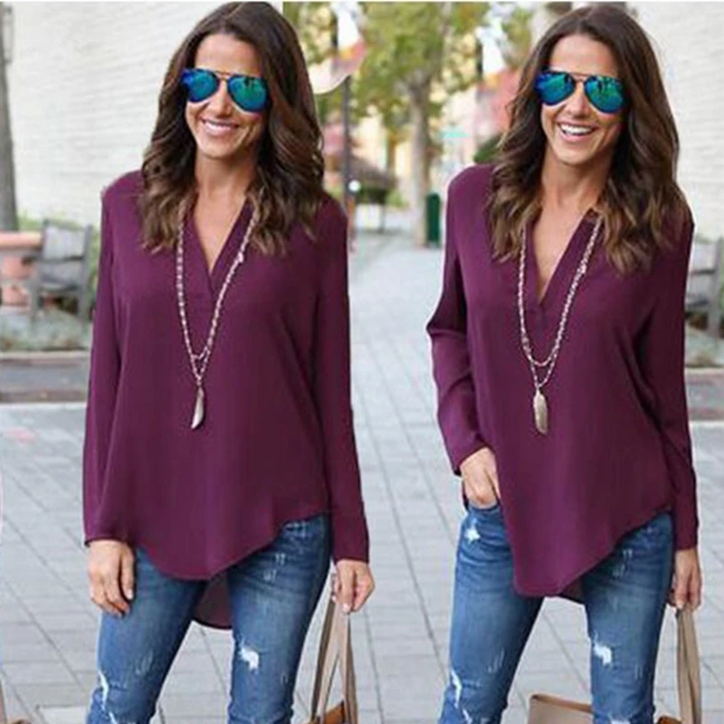 Women Blouses: V-Neck Blusas Vetement Femme