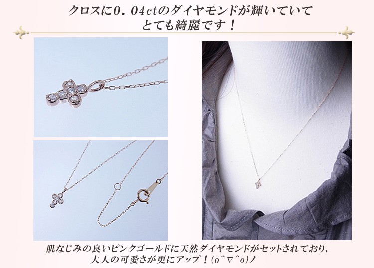 商品説明 美しい丸みのあるプチサイズのクロスダイヤモンドネックレスです。素材はピンクーゴールドです。