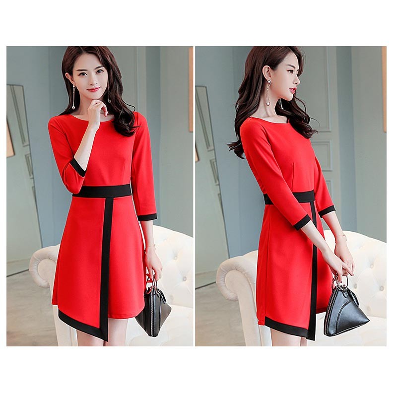 ブラックのラインで大胆にブロックデザインされたワンピース!