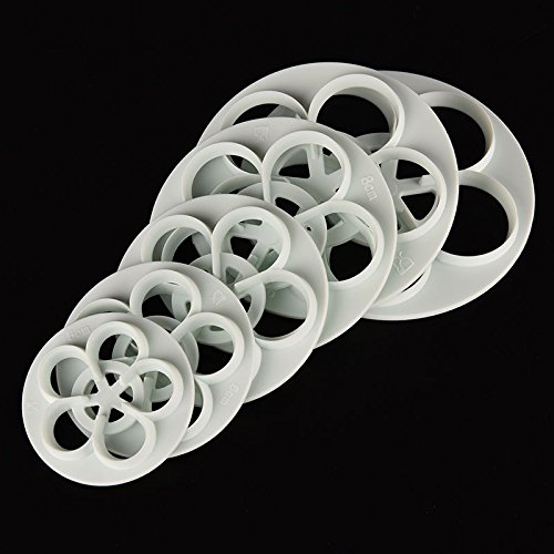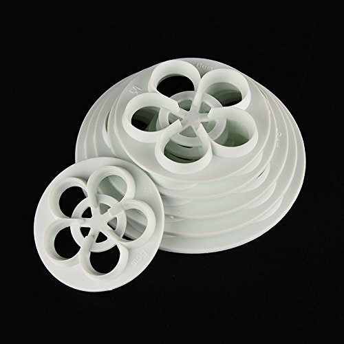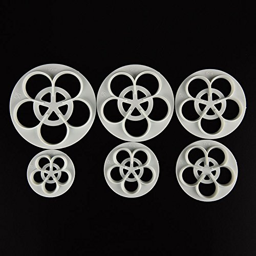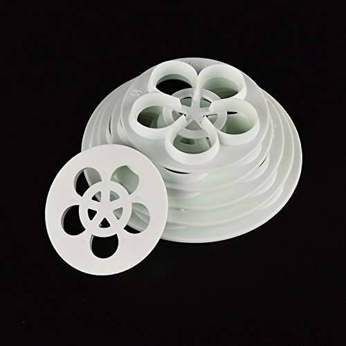 -. Feature : Easy to use and clean / Material: Plastic / Color: White / Quantity:6pcs / Size of Cutters: 5cm/6cm/7cm/8cm/9cm/10cm per bag