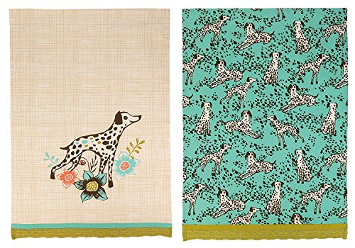 Sarah Watts Single Dalmatian Dog Many Dalmatians Designer Kitchen Dish Tea Towels Dishcloths Set of 2