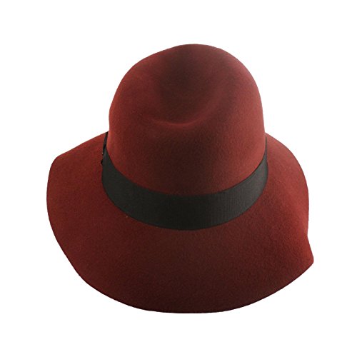 -. Title : Winter Soft Wool Felt Ribbon Fedora Floppy Panama 3" Wide Brim Dress Hat Wine